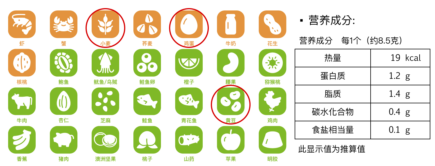 ■过敏原: 配料中含有鸡蛋,小麦,大豆。