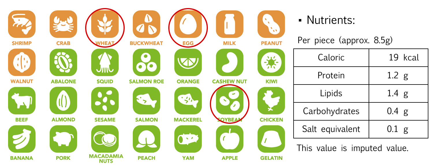 ■Allergy: EGG, WHEAT, SOYBEAN are included as part of the ingredients.