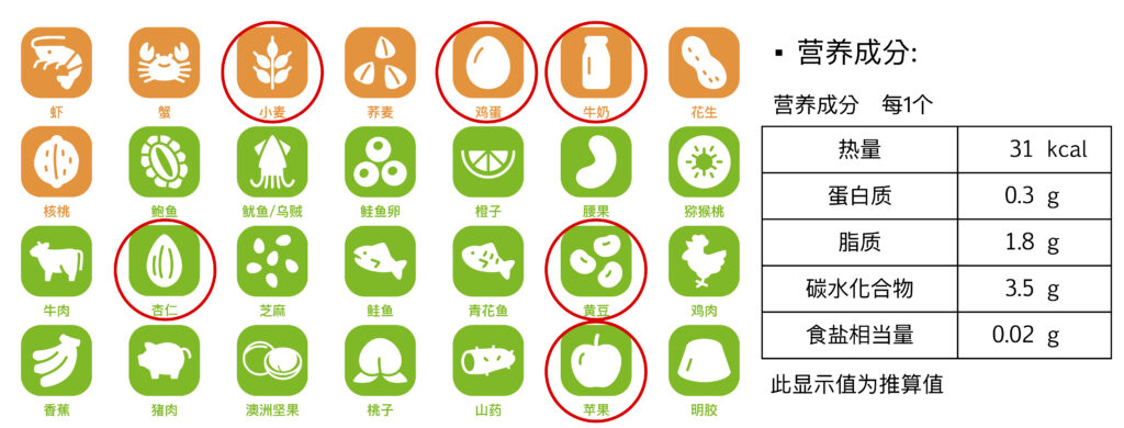 ■过敏成分: 本品部分原料含有小麦鸡蛋乳制品杏仁大豆苹果